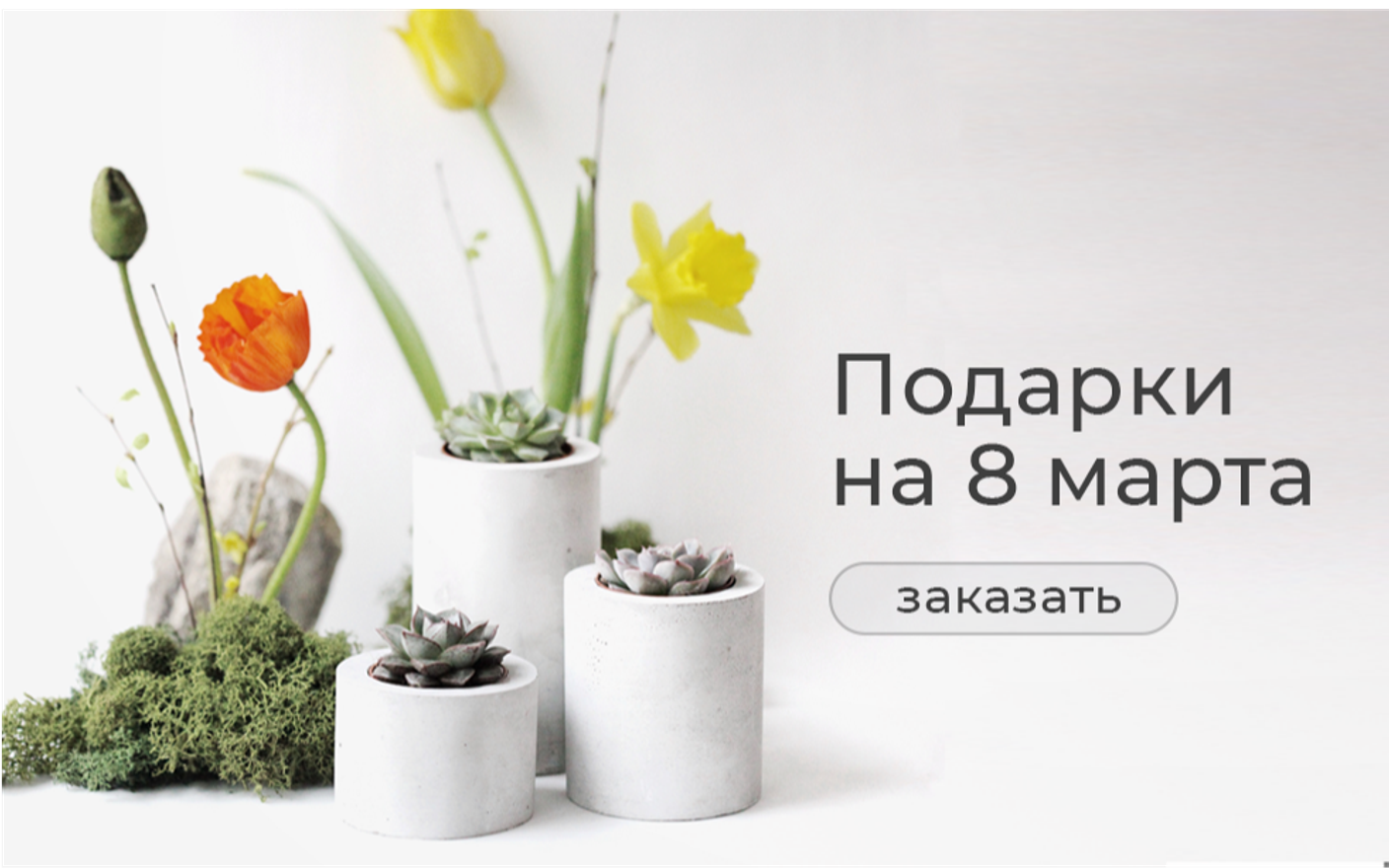 Например, цветы в стеклянной вазе, новогодние композиции или весенние букеты из первоцветов. Такие готовые композиции эффектно подчёркивают особый повод и придают подарку праздничный характер