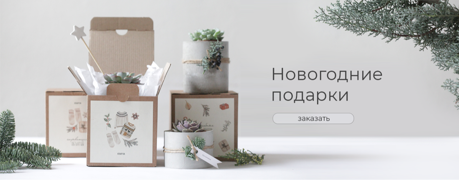 Мы комбинируем несколько предметов и оформляем их в общей подарочной коробке. Разрабатывается концепция и дизайн упаковки, добавляются брендированные открытки, сезонный декор