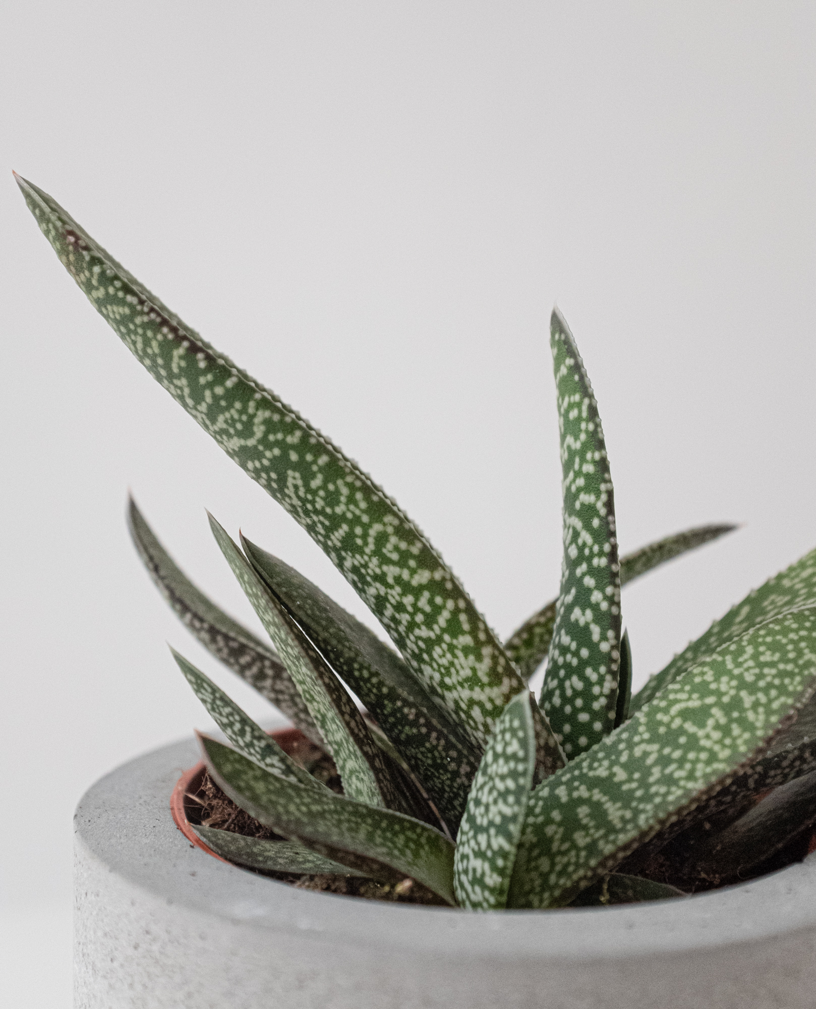 Гастерия комфортно себя чувствует в тесных горшках с хорошим дренажем. По бокам она дает много дочерних розеток, которые можно отделять и рассаживать.