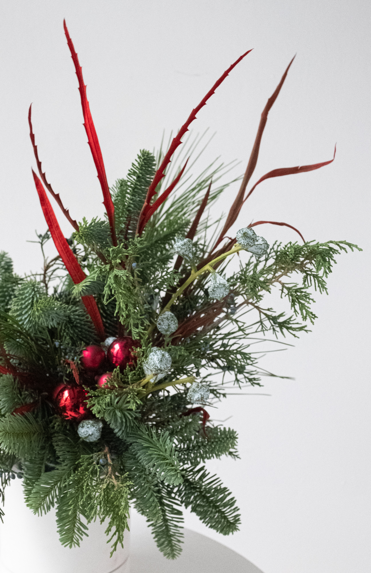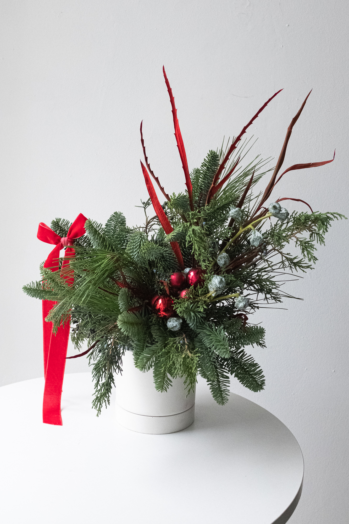 Хвойная композиция с красным декором малая
