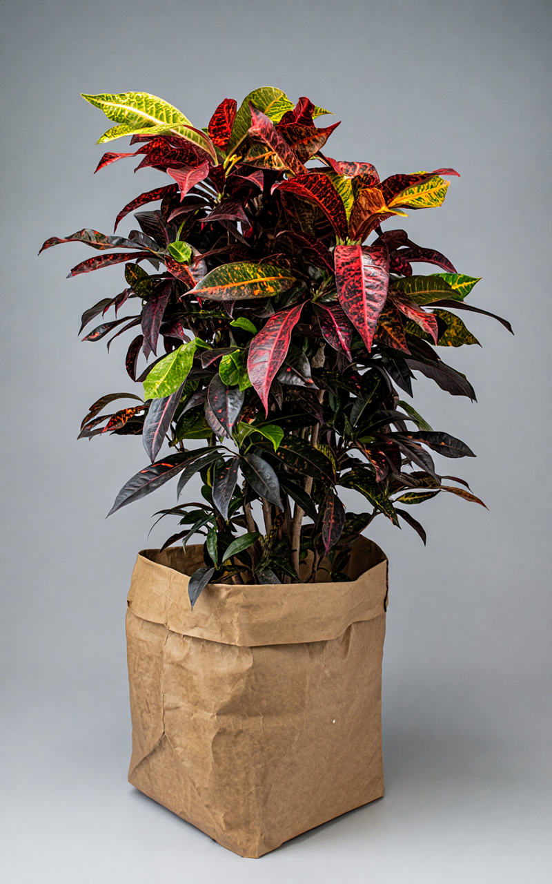 Кротон любит высокую влажность. В сухих помещениях полезно опрыскивать листья и поддерживать влажность воздуха.