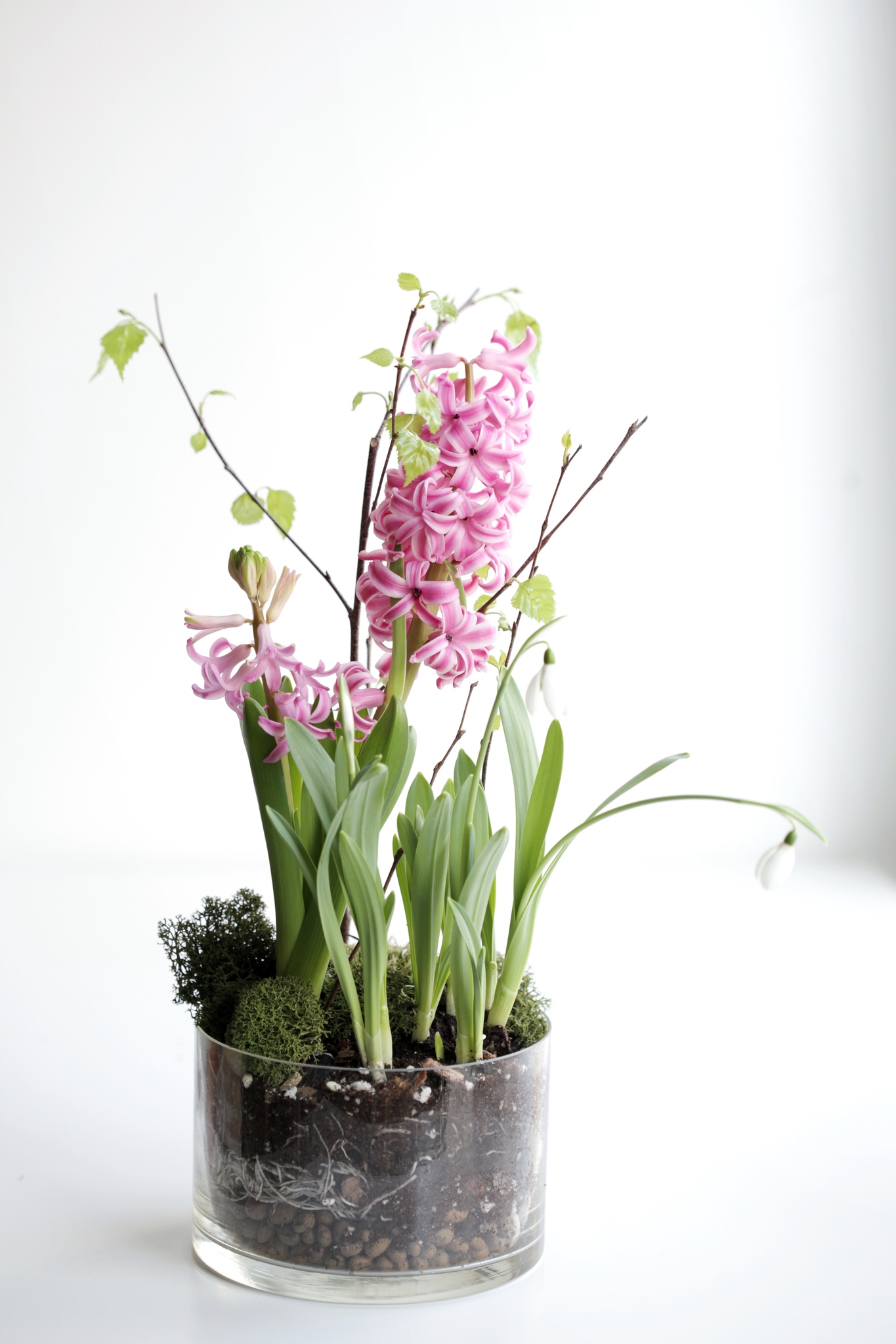 Композиция с первоцветами в стеклянной вазе размер S