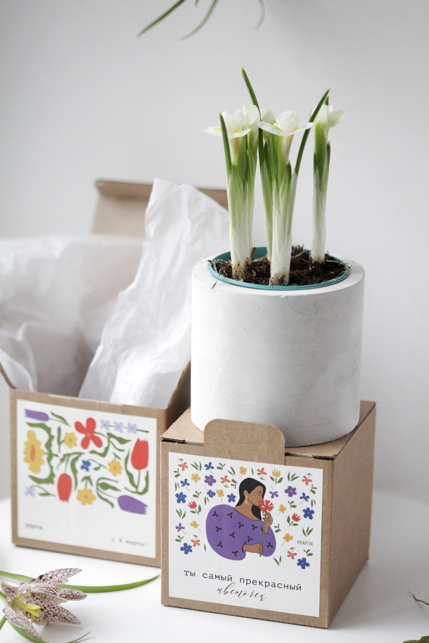 Всё упаковано красиво в крафтовую коробочку с инструкцией по уходу за первоцветами.