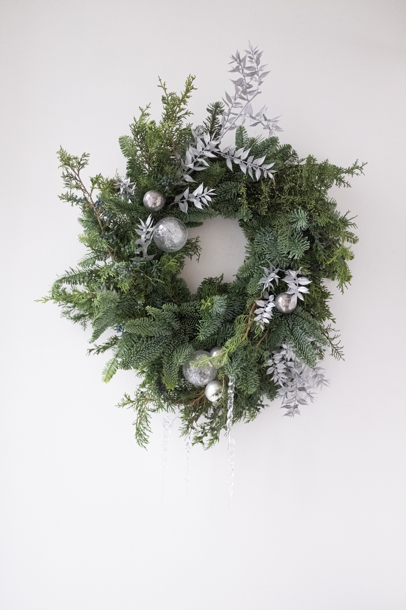 Рождественский венок с серебряным декором