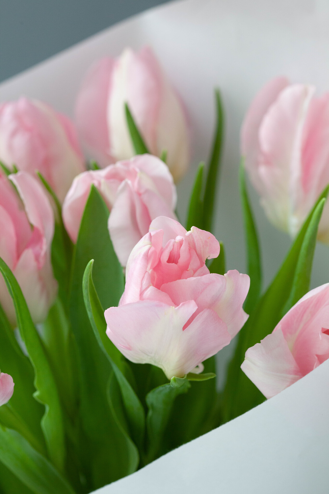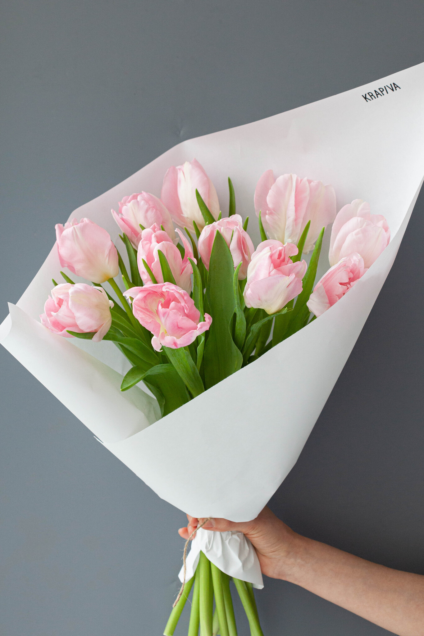Карамельные тюльпаны нежно-розового цвета, собранные в моно-букет.