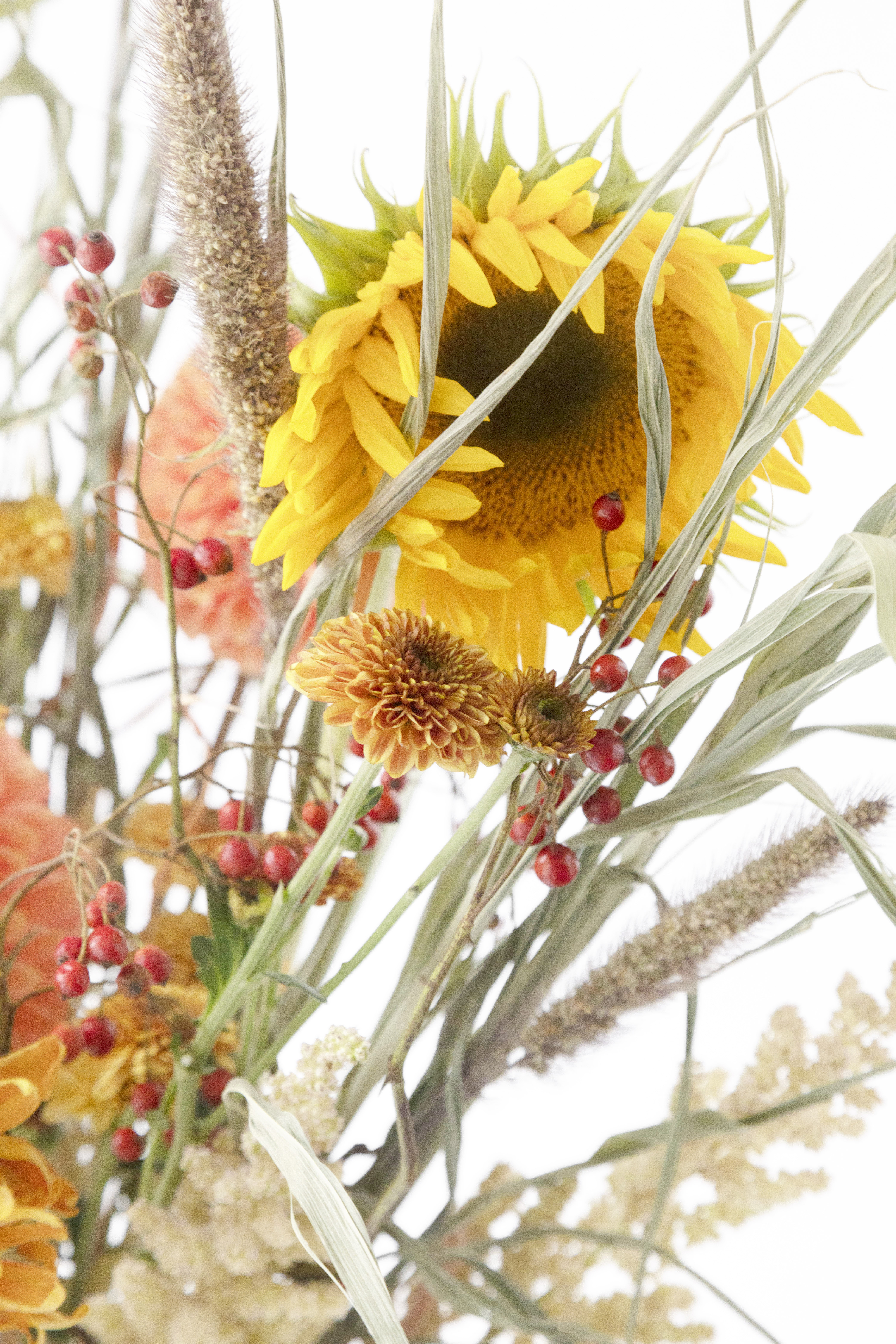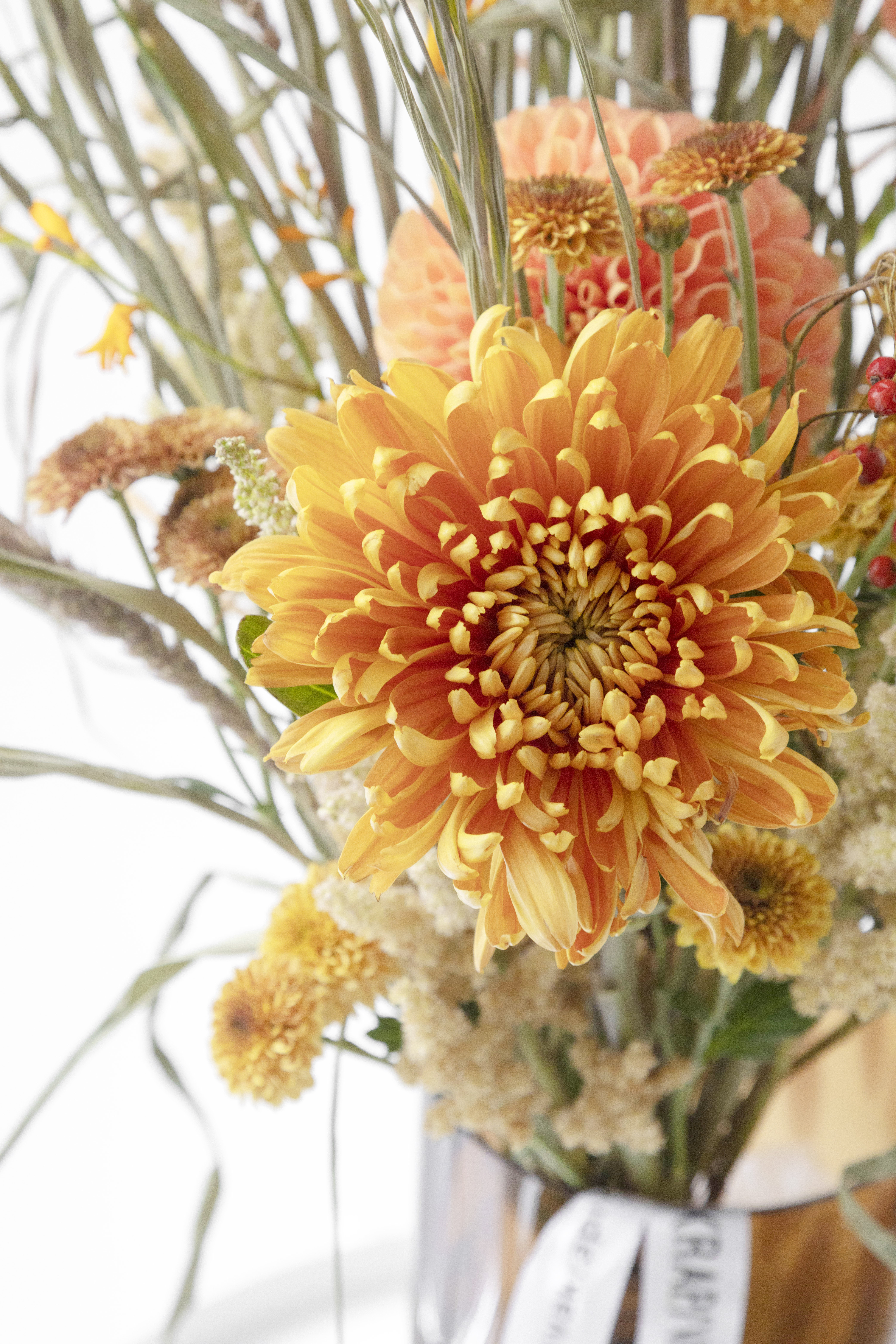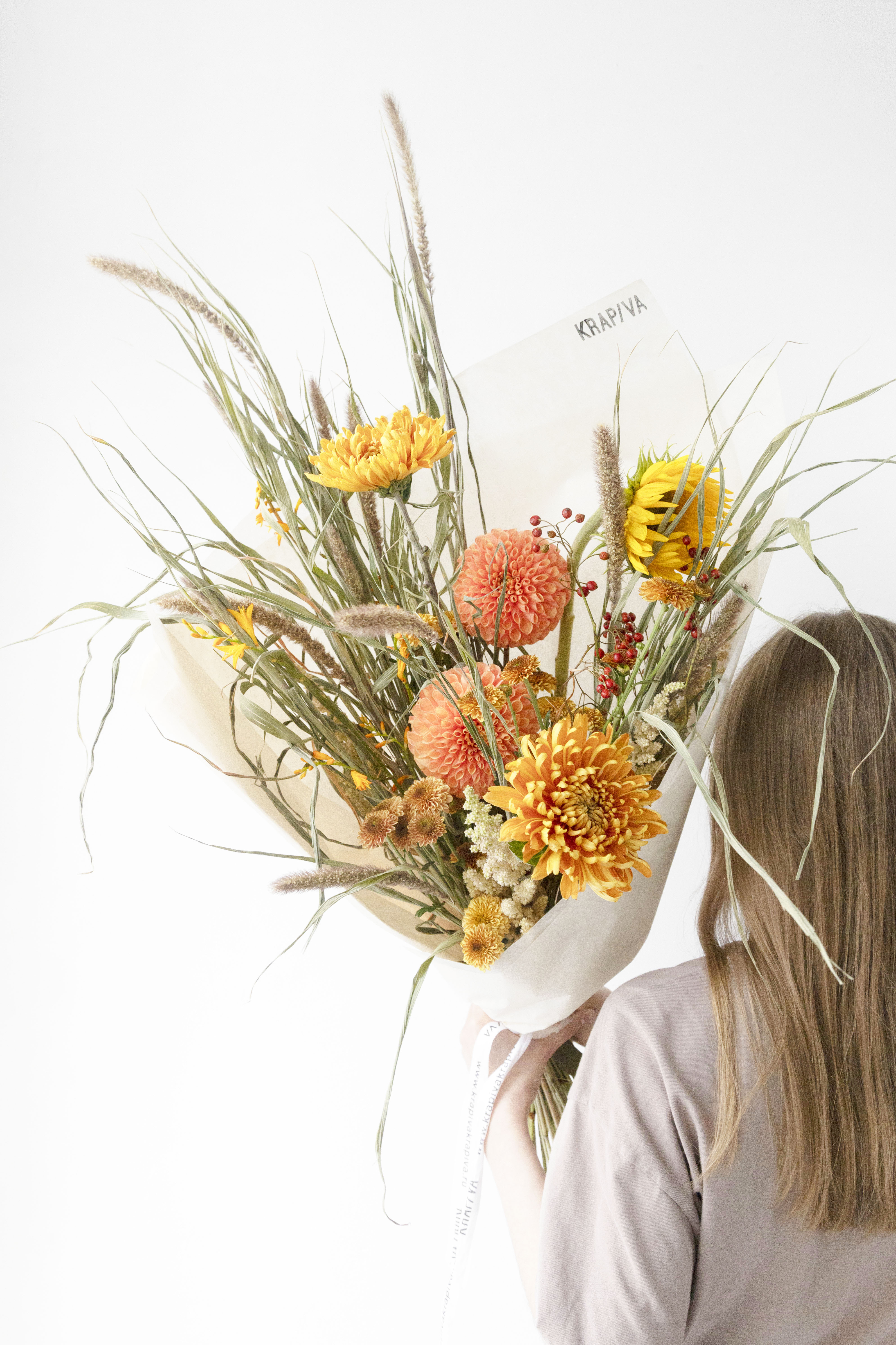 Купить букет с хризантемами, подсолнухами и шиповником в натуральной теплой гамме. Авторская флористическая композиция с крокосмией, сетарией и астильбой. Идеальный букет в подарок женщине или мужчине, для интерьера или на особый случай. Закажите доставку букета «Ветивер и шиповник» — флористическая формула заземлённости и спокойствия.